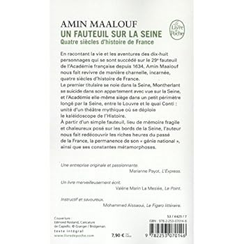Depuis 1634, dix-huit personnages se sont succédé au 29e fauteuil de l’Académie française avant Amin Maalouf. Son premier occupant se noie dans la Seine, Montherlant se suicide dans son appartement avec vue sur la Seine, et l'Académie elle-même siège dans un petit périmètre longé par la Seine, entre le Louvre et le quai Conti : unité d'un lieu à partir duquel se déploie le kaléidoscope de l'Histoire.Le pouvoir des rois et des cardinaux, des hommes d'épée et des négociateurs, l'autorité grandissante ou déclinante des philosophes et des savants, l'influence des poètes, des librettistes, des dramaturges et des romanciers : autant de visages de la gloire qui nous parlent des âges différents de la Nation. Une redécouverte charnelle et incarnée de notre « génie national ». Une entreprise originale et passionnante. Marianne Payot, L’Express. Un livre merveilleusement écrit. Valérie Marin la Meslée, Le Point. Instructif et savoureux. Mohammed Aïssaoui, Le Figaro littéraire.